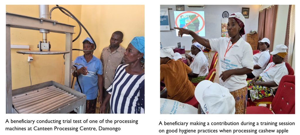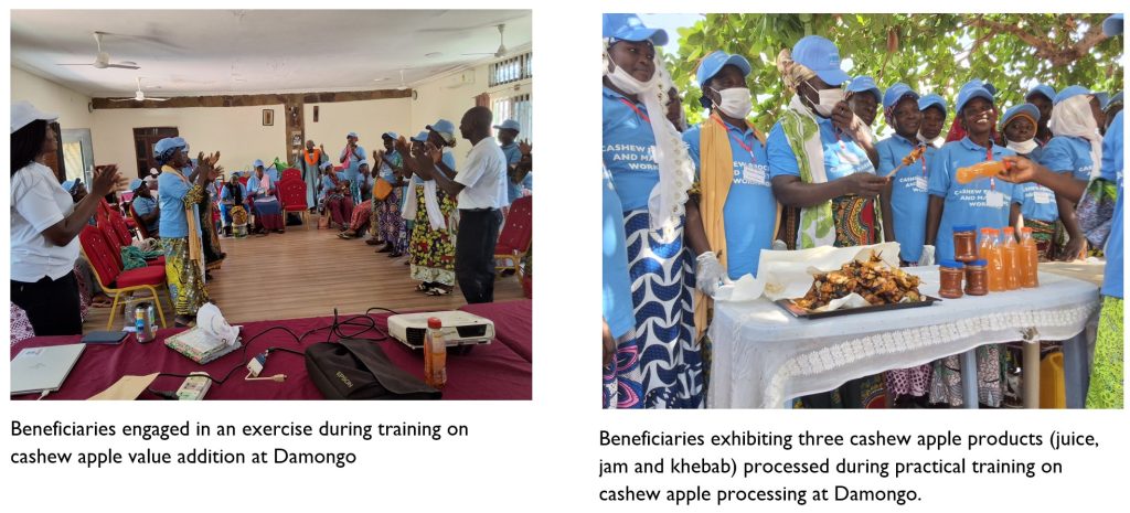 - Twenty-nine (29) beneficiaries gained additional knowledge and experience in cashew apple value addition with focus on juice, jam and ‘khebab’