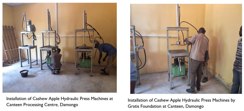 - Project beneficiaries supported with five (5) locally fabricated hydraulic press cashew apple juice extractors, PPEs (i.e. wellington boots, hand gloves, nose masks, overall), juice bottles, preservatives and packaging boxes