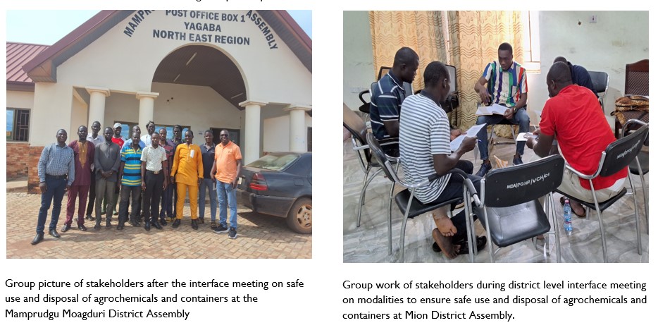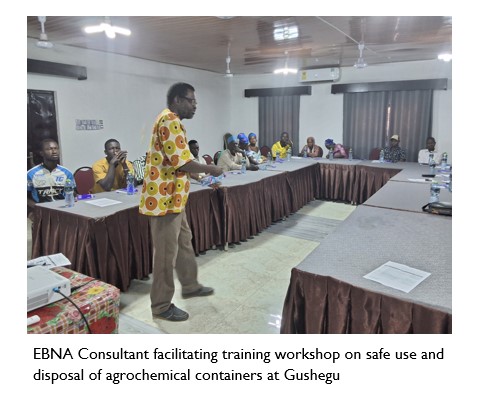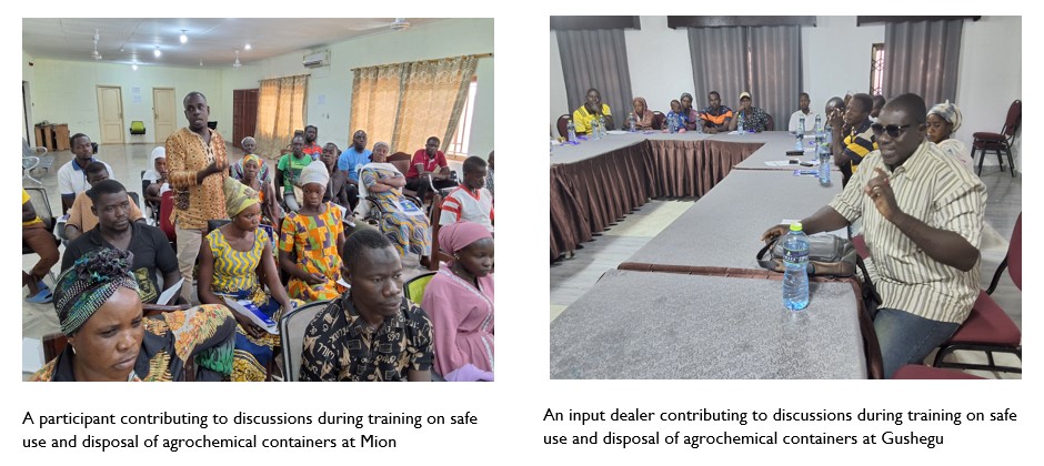 - Built the capacity of 156 input dealers and farmers at Mion, Yendi, Gushegu, Nanton, East Mamprusi and Mamprugu Moagduri districts on safe use of agrochemicals and disposal of agrochemical containers.