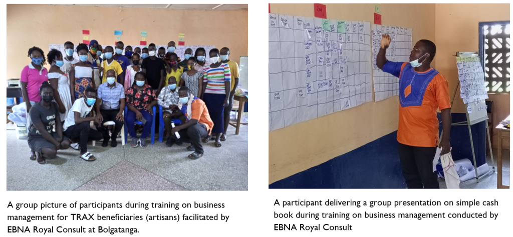 11. Training on business management and records keeping: Contracted by TRAX Ghana in September 2021, September 2019 and September 2024 to build the capacity of selected artisans and women traders in business management and records keeping and management of Village Savings and Loans Associations (VSLAs).