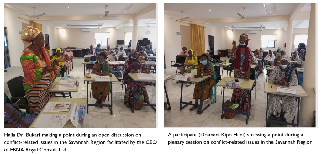 - The capacity of 162 members enhanced to enable them strategically position themselves to effectively contribute to the prevention and management of conflicts and violent extremism and promotion of peace building in the Savannah Region.
