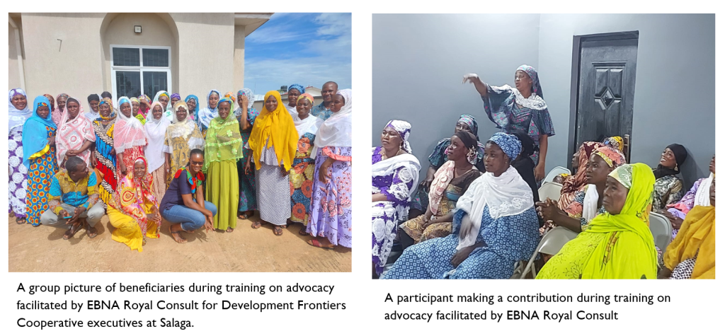 12. Training on the concept and practice of advocacy: Contracted by Development Frontiers to build the capacity of 30 executives of Development Frontiers Women Cooperative on advocacy under the STAR Ghana Action for Voice and Inclusive Development (AVID) project at Salaga (July 2023)