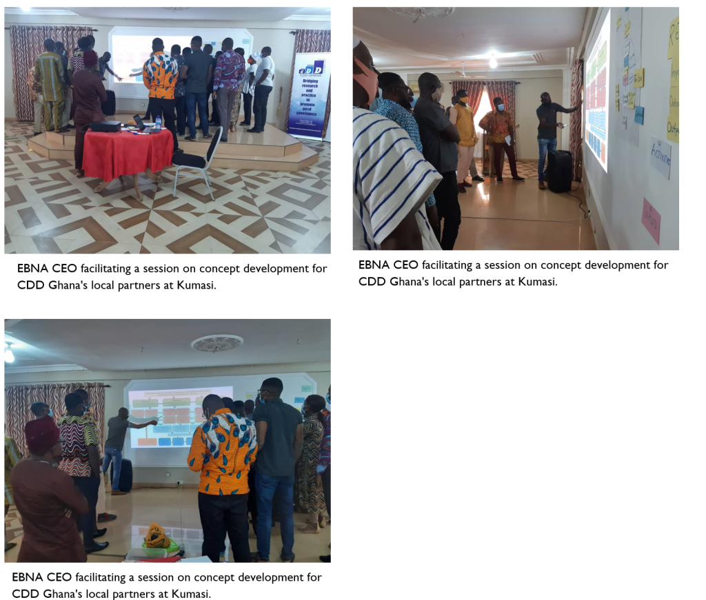 9. Training on basic financial management and records keeping, resource mobilization and fund raising and concept development: Contracted by Centre for Democratic Development (CDD Ghana) to build the capacity of twenty (20) local partners of CDD Ghana on basic financial management and records keeping, resource mobilisation and fund-raising and concept development in Kumasi (November 2020).